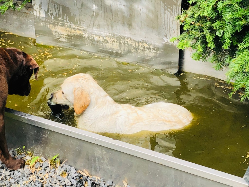 Labradors beherrschen die Kunst, mit nur einem Liter Wasser im Napf die gesamte Napfumgebung zentimeterhoch unter Wasser zu setzen.